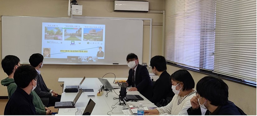 大学院の授業では,学部の授業に比べ、比較的少人数で対話的に学びを深めることができます。特に本授業は,EVRI(広島大学教育ヴィジョン研究センター)で実施されている「教師教育者のためのプロフェッショナル・ディベロップメント講座」の受講生も受講されており,現職の教師教育者の声を聞きながら教師教育についての理解を深めていくことができることも魅力です。